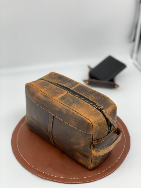 Buffalo Leather Toiletries Bag (Dopp Kit)