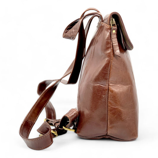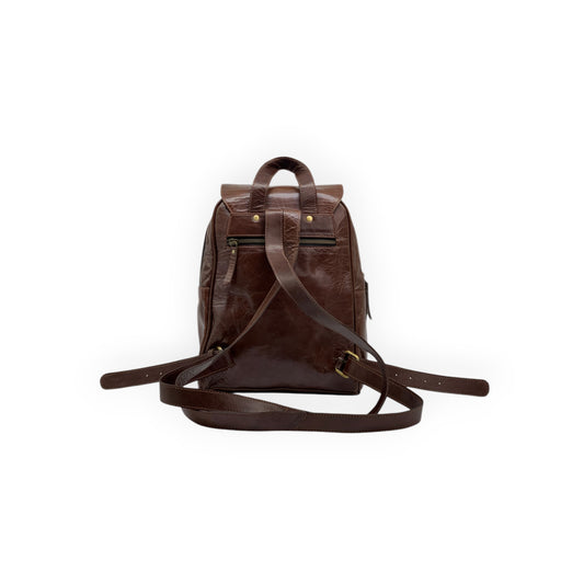 Dark Brown Glossy Leather Backpack (Small)
