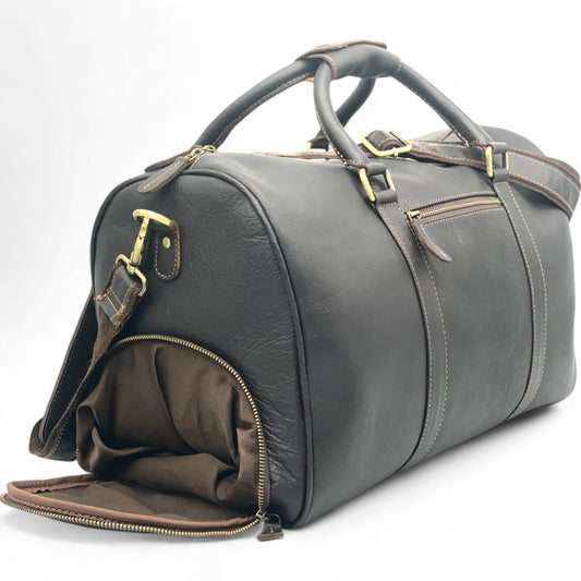 Genuine Leather Travel Duffle Bag with Side Shoe Pocket