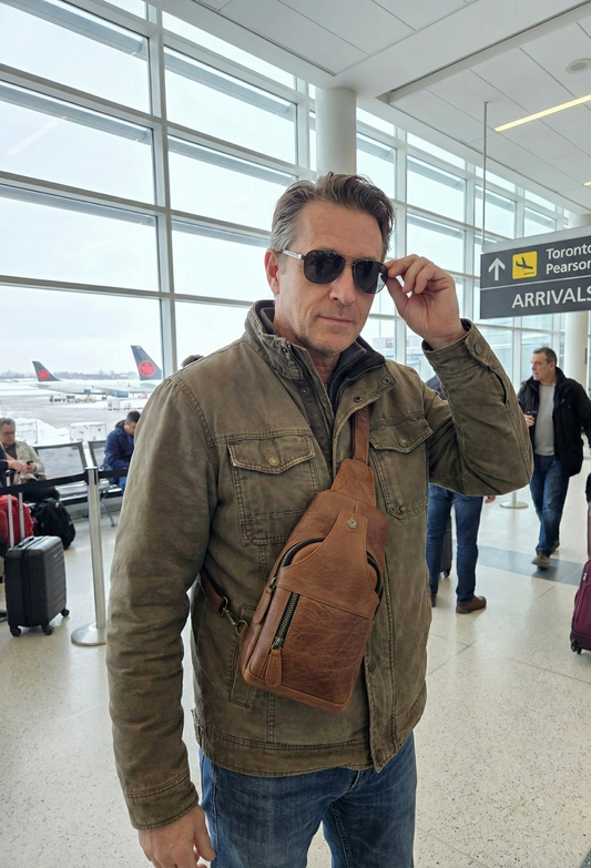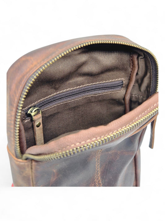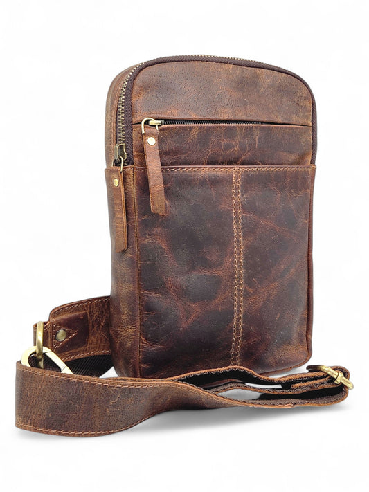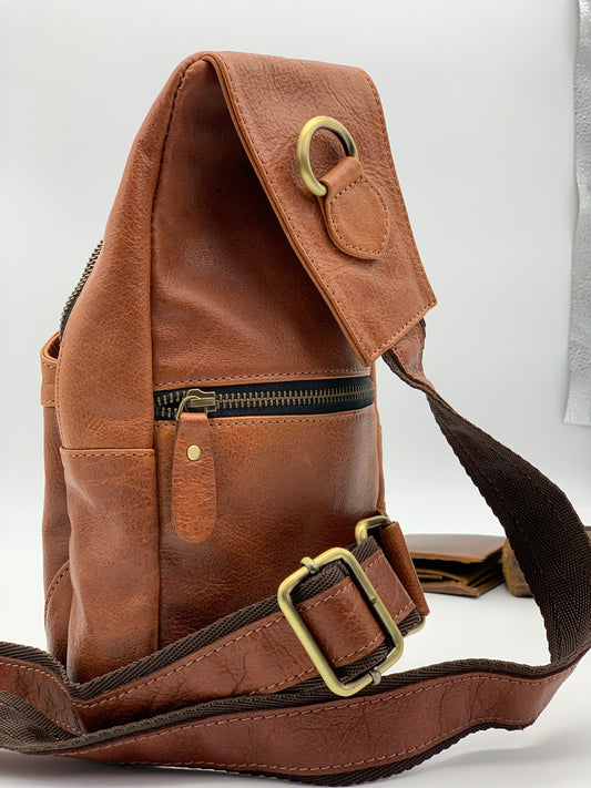 Handmade Leather Sling Bag: Crossbody Chest Pack - Bison Leather Brown