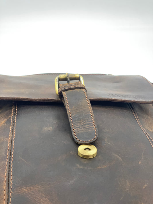 Vintage Brown Leather Messenger Bag for Men, Full-Grain Crossbody Bag