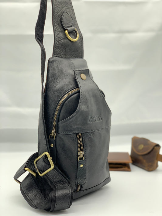 Best Genuine Black Leather Chest Bag – Stylish Crossbody Daypack & Durable Sling Bag