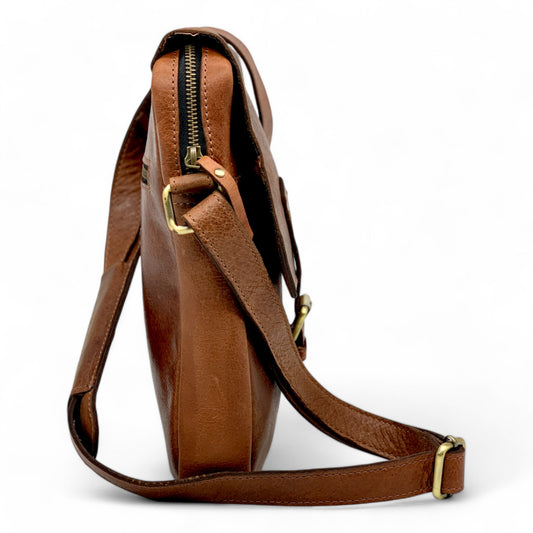 Handcrafted Bison Leather Light brown Crossbody Bag: Full-Grain bison Sling