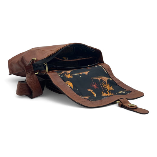 Brown Leather Crossbody Shoulder Bag with Pockets, Organiser Handbag with Adjustable Strap, Gifts for Her