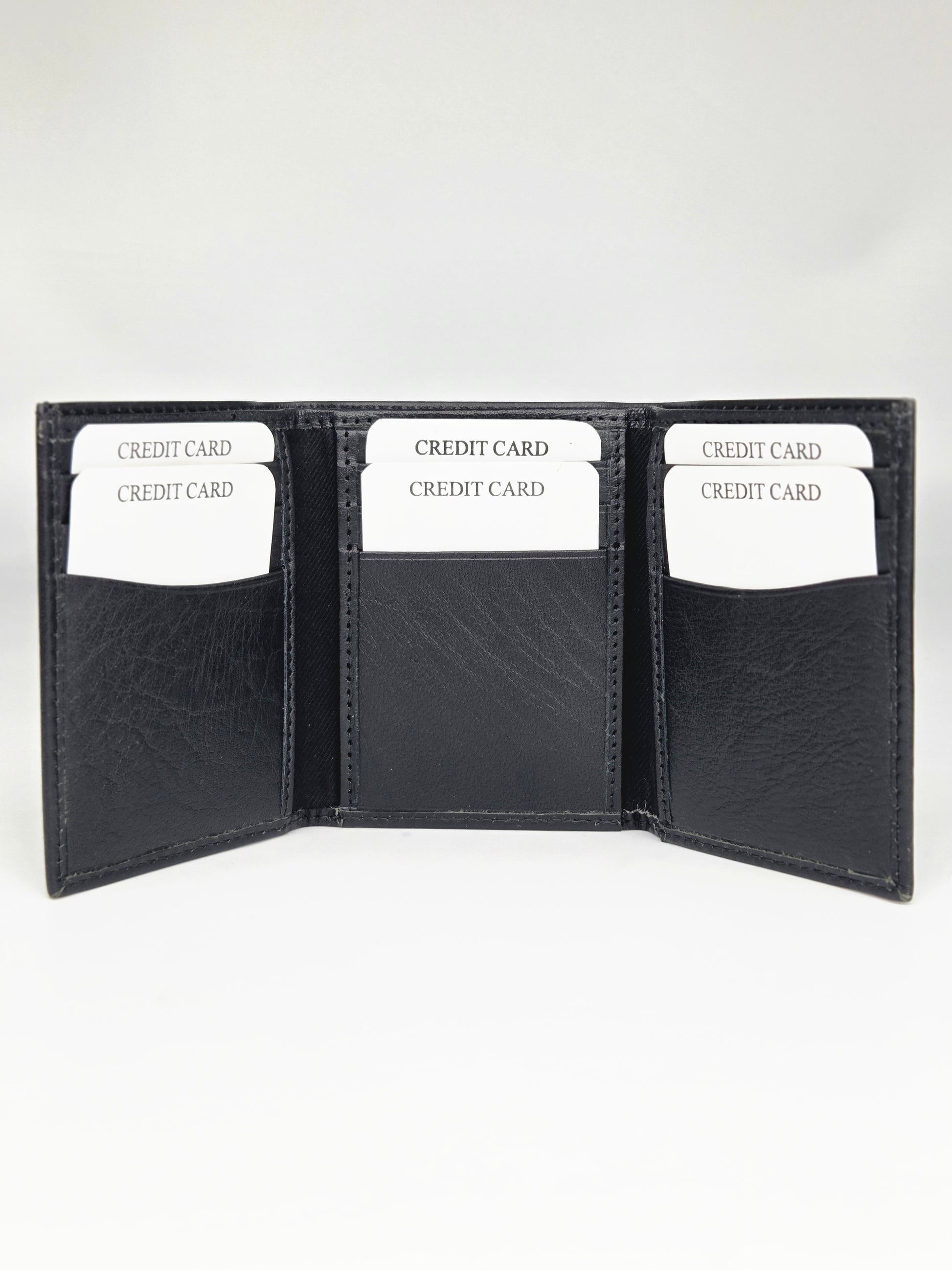 Classic Tri-Fold Black Leather Wallet for Everyday Use