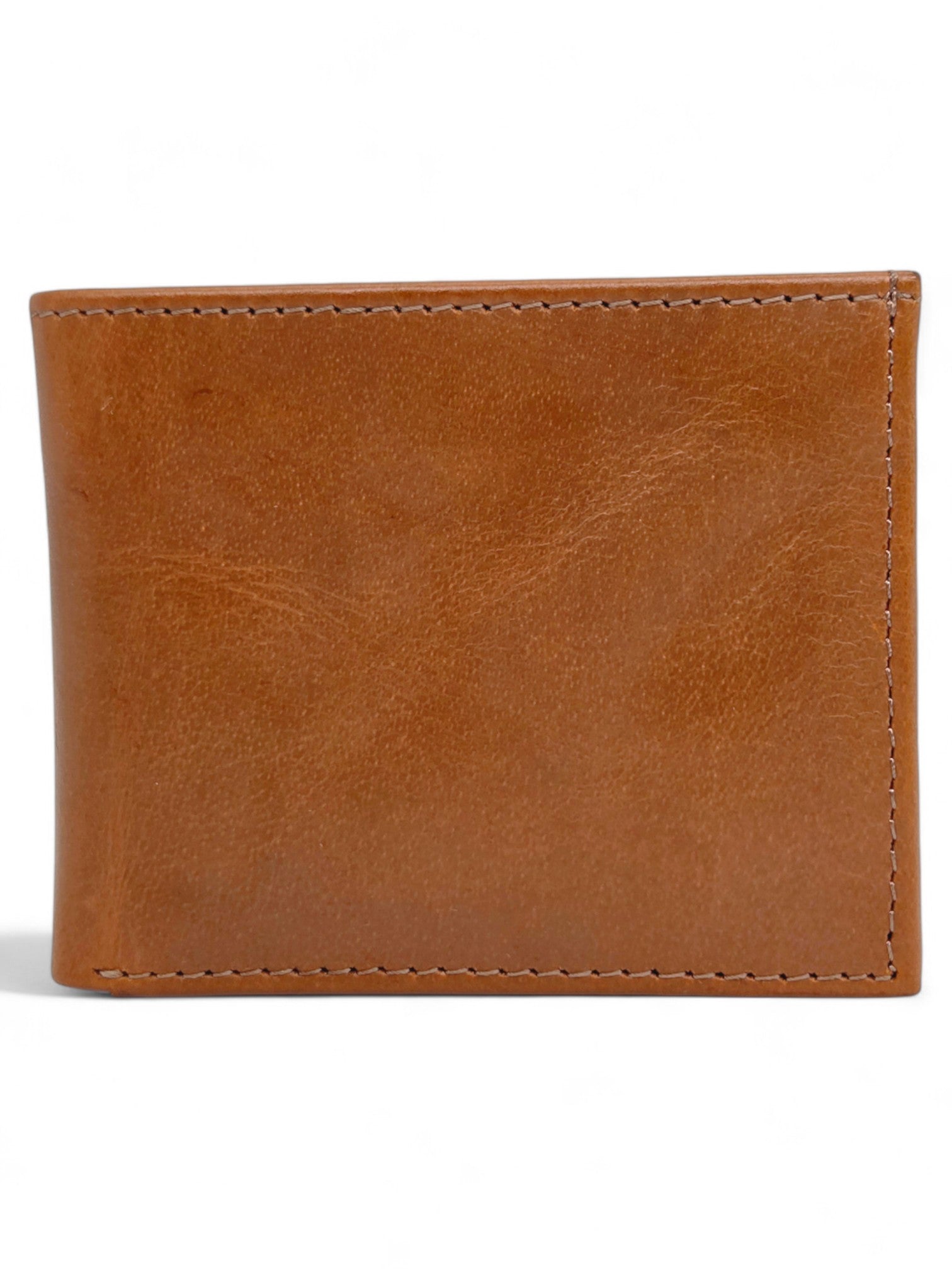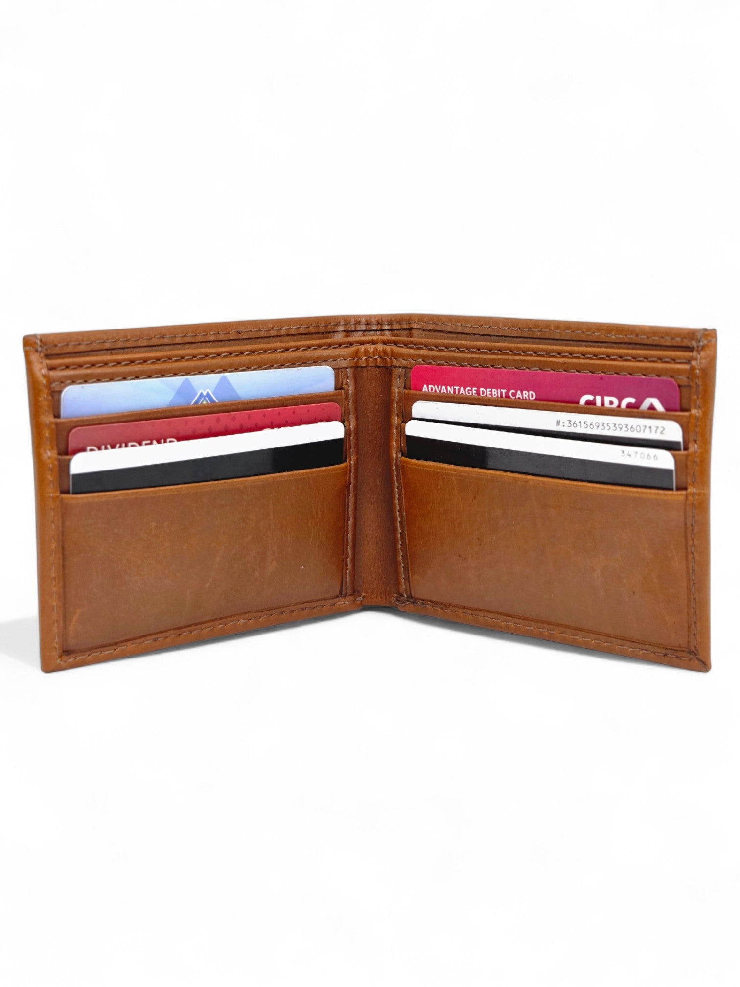 Genuine Tan Leather Bi-Fold Wallet with 6 Card Slots