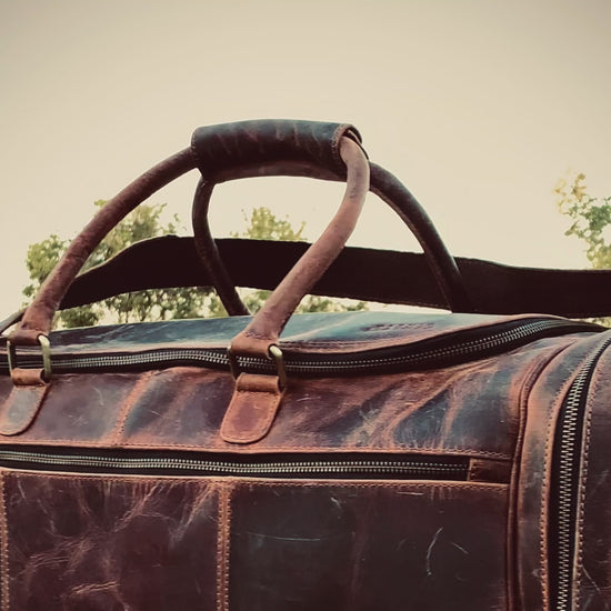 The high-quality brass hardware and strong zippers add to its durability, while the natural leather finish develops a unique patina over time, making your bag even more special.